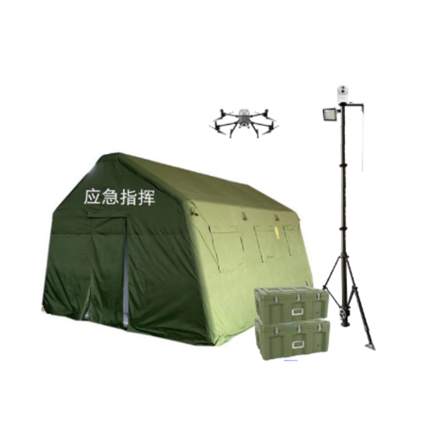 1、基礎支撐:雙層充氣帳篷,保溫、防雨雪,可以在10分鐘左右完成搭建,尺寸根據指揮部規??伸`活選配,配套折疊桌椅,,配備柴油暖風機等取暖設備解決冬季取暖問題,石墨烯加熱睡袋解決人員野外休息問題。